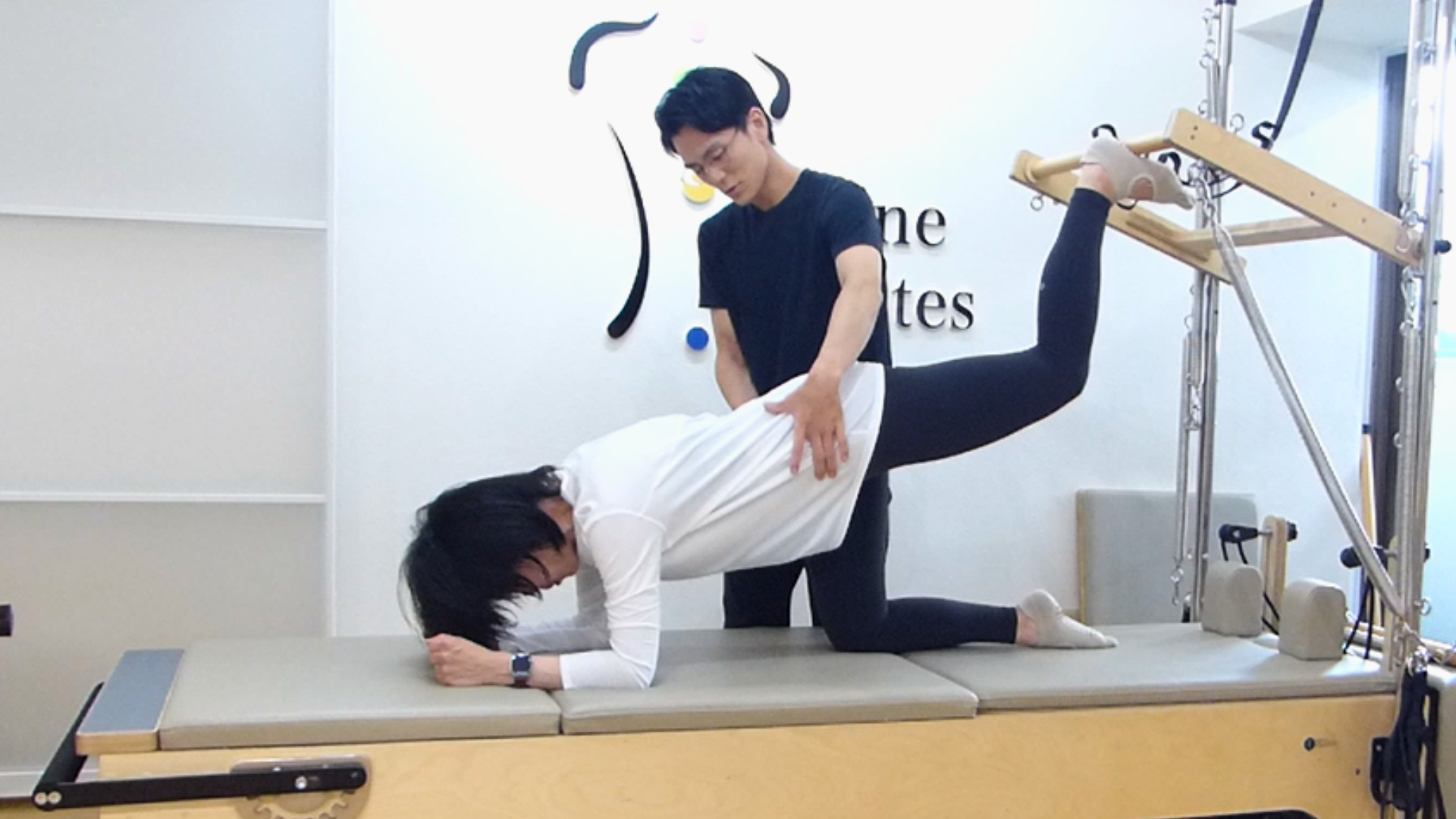 ピラティスでは呼吸の使い方やフォームの正しさが重要なので、まずはパーソナルレッスンで基礎を学ぶ。