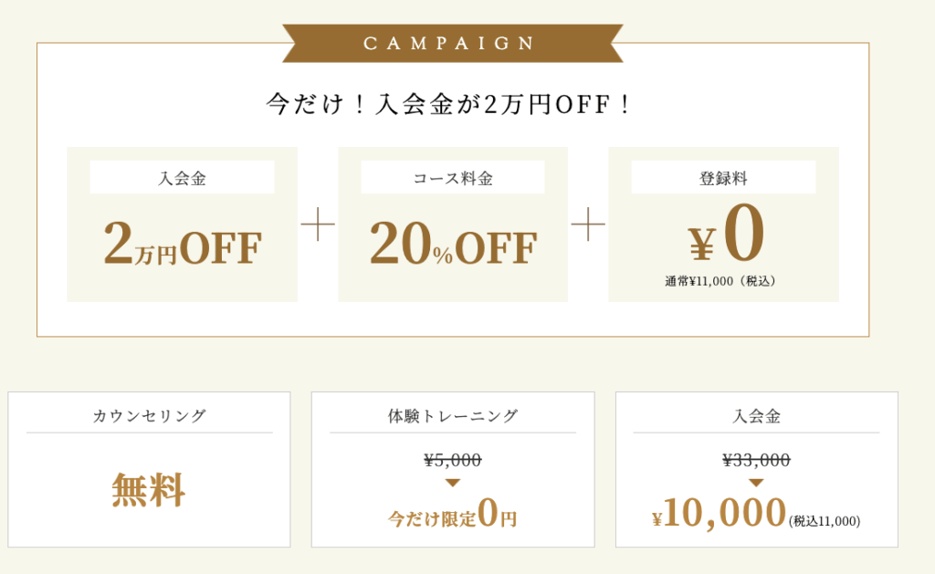 | 初回体験レッスン | 完全無料 |