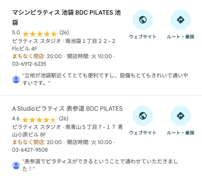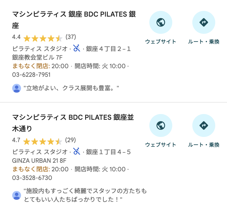 | ピラティスK | the SILK | zen place | CLUB PILATES | Pilates Mirror | noa | LALA PILATES | BDC | |