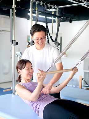 初めてピラティスの体験をしましたが、トレーナーさんがとても優しく、事前の丁寧な説明のおかげで体験中もアタフタせずに行うことができました。ピラティス最中は、呼吸や体感、鍛えたい部分を意識しながら丁寧に行うことができました。体験後の日常生活では、呼吸や体幹を意識付けることができています。