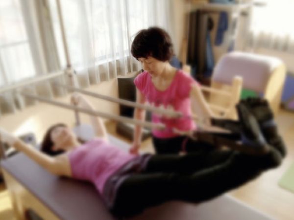 ピラティスでは呼吸の使い方やフォームの正しさが重要なので、まずはパーソナルレッスンで基礎を学ぶ。